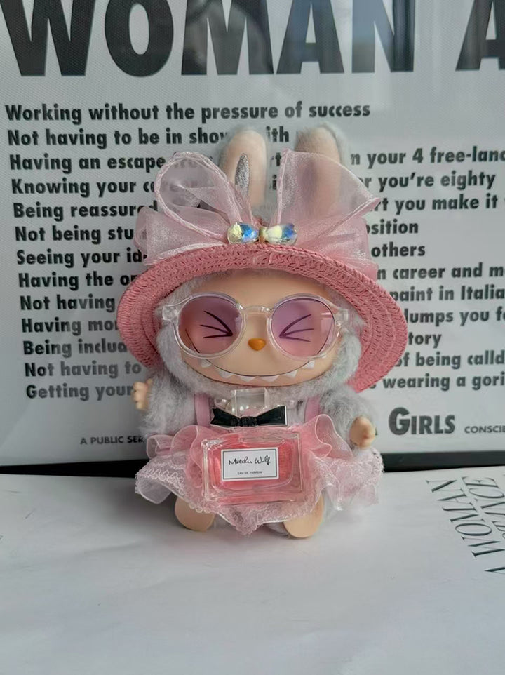 LABUBU Clothes Bow - adorned Straw Hat & Lace Ensemble