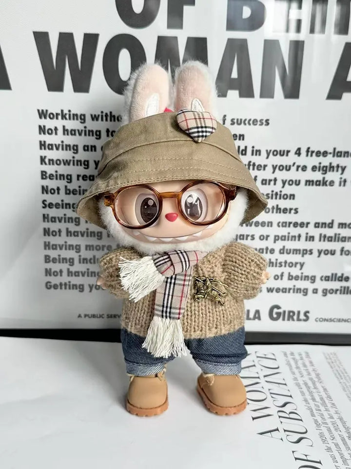 LABUBU Clothes Burbe Beige Hat & Knitwear Set