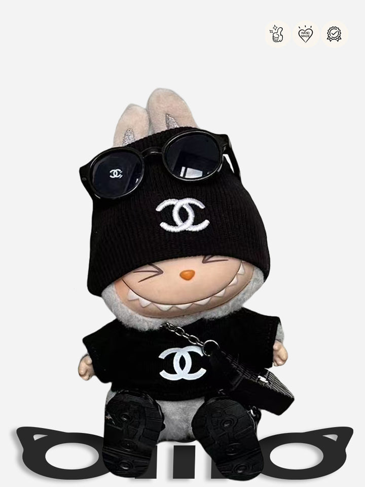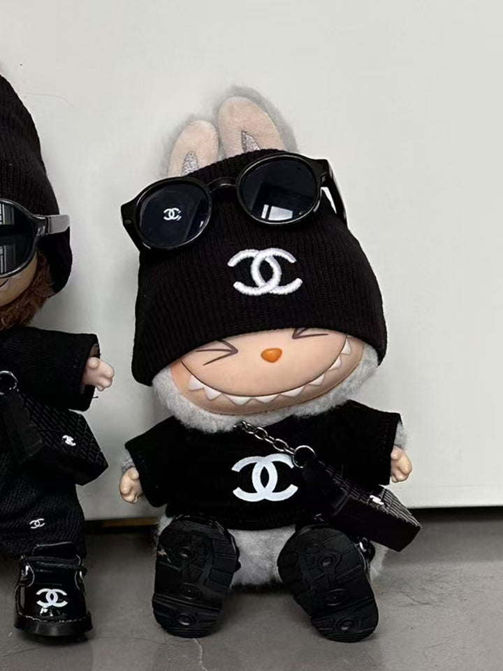 LABUBU Clothes Chan*l Black Knit Hat Cool Outfit