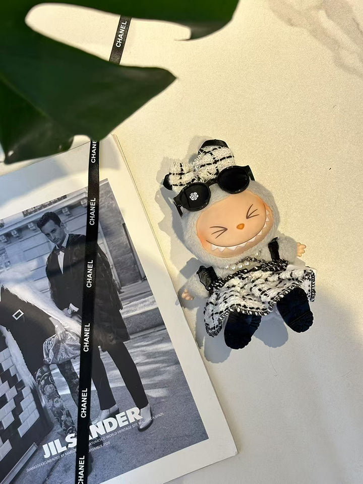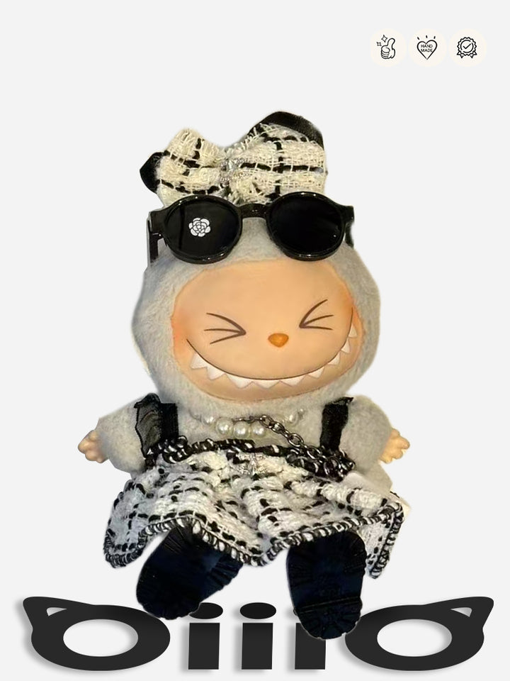 LABUBU Clothes Chan*l Elegant Pearl Chain Tweed Ensemble
