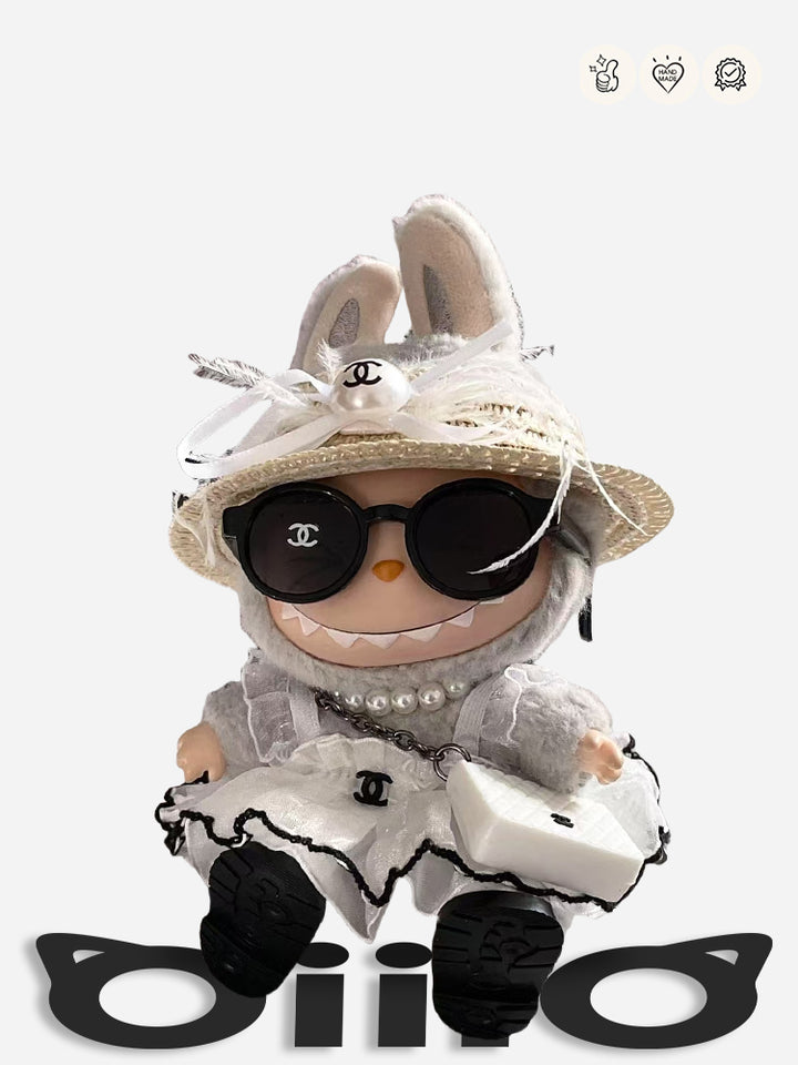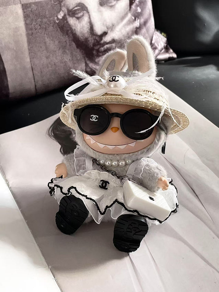 LABUBU Clothes Chan*l Feather Hat Mesh Dress Outfit