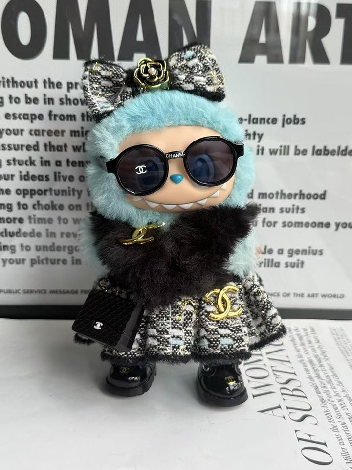 LABUBU Clothes Chan*l Luxe Tweed - fur & Gold - accented Set