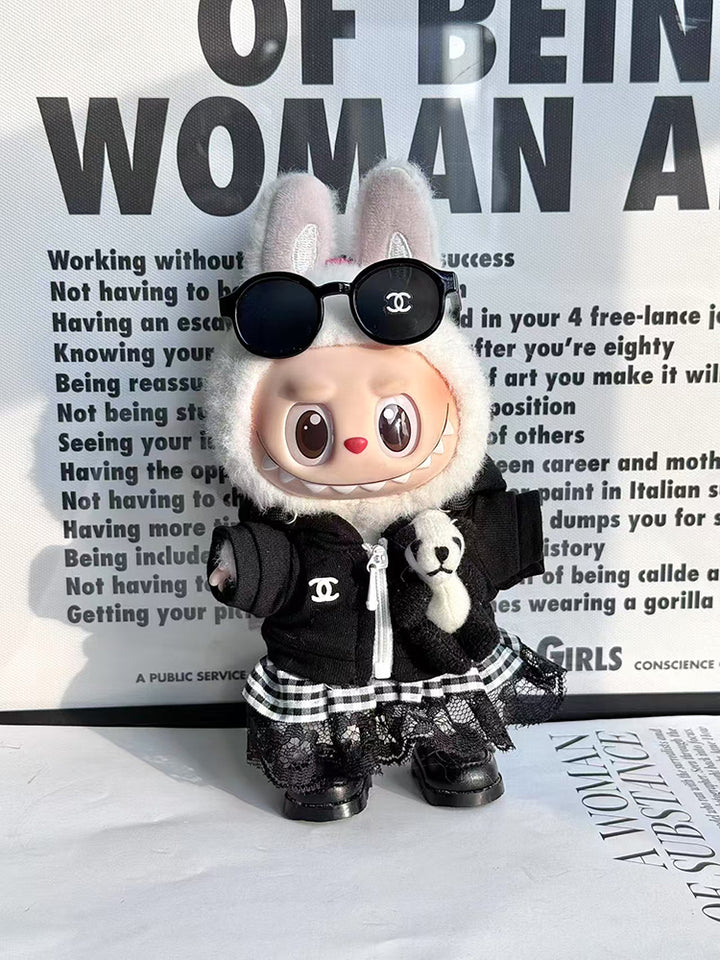 LABUBU Clothes Chan*l Punk - chic Black Jacket & Mixed - skirt Ensemble