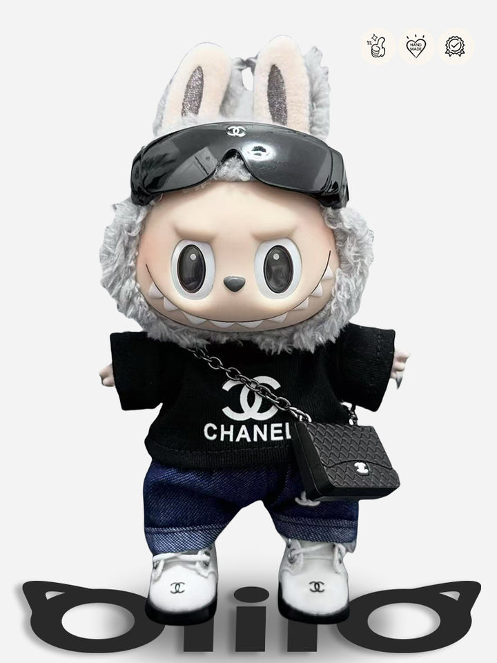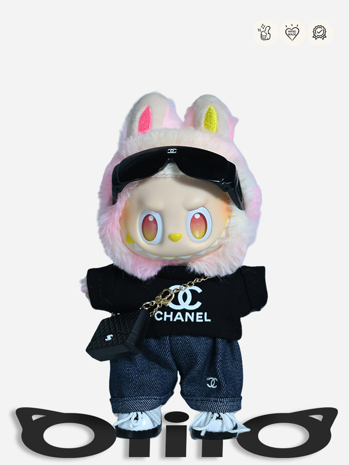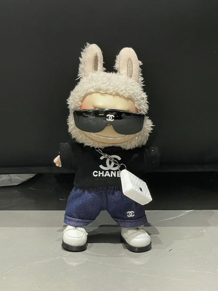 LABUBU Clothes Chan*l Sunglasses Black Tee Ensemble