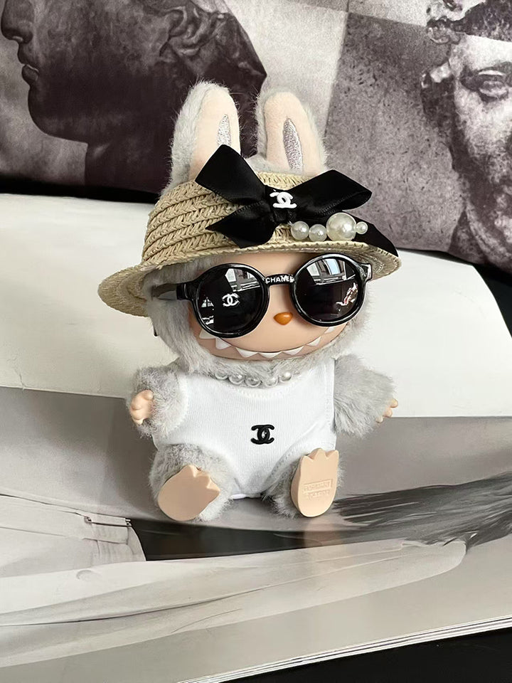 LABUBU Clothes Chan*l Sunglasses - Straw Hat Bodysuit Set