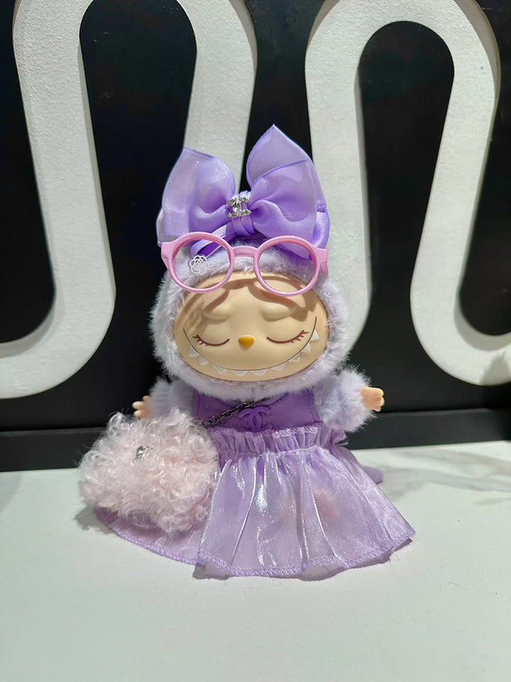 LABUBU Clothes Chan*l Sweet Purple Bow Dress Outfit