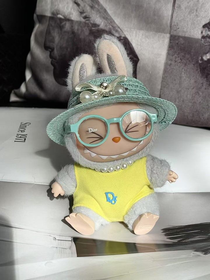 LABUBU Clothes Dio* Sweet Straw Hat & Glasses Outfit