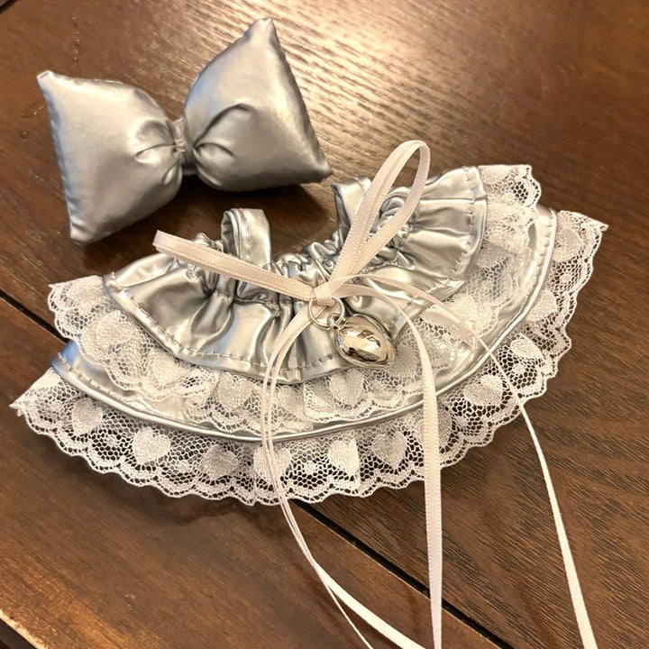 Labubu Clothes Lolita Silver Bow Lace Dress