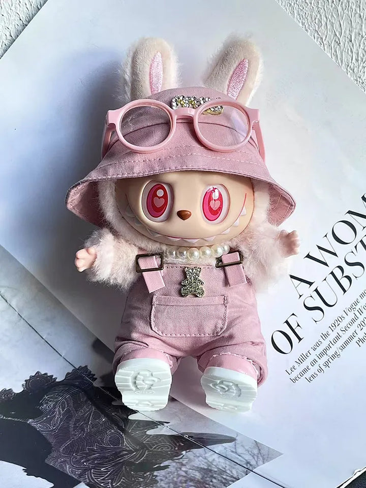 LABUBU Clothes mi*mi* Pink Bucket Hat & Overalls Set