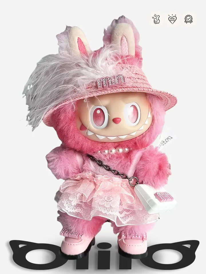 LABUBU Clothes mi*mi* Pink Feather - hat & Dress Set