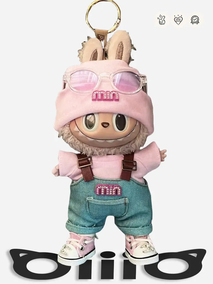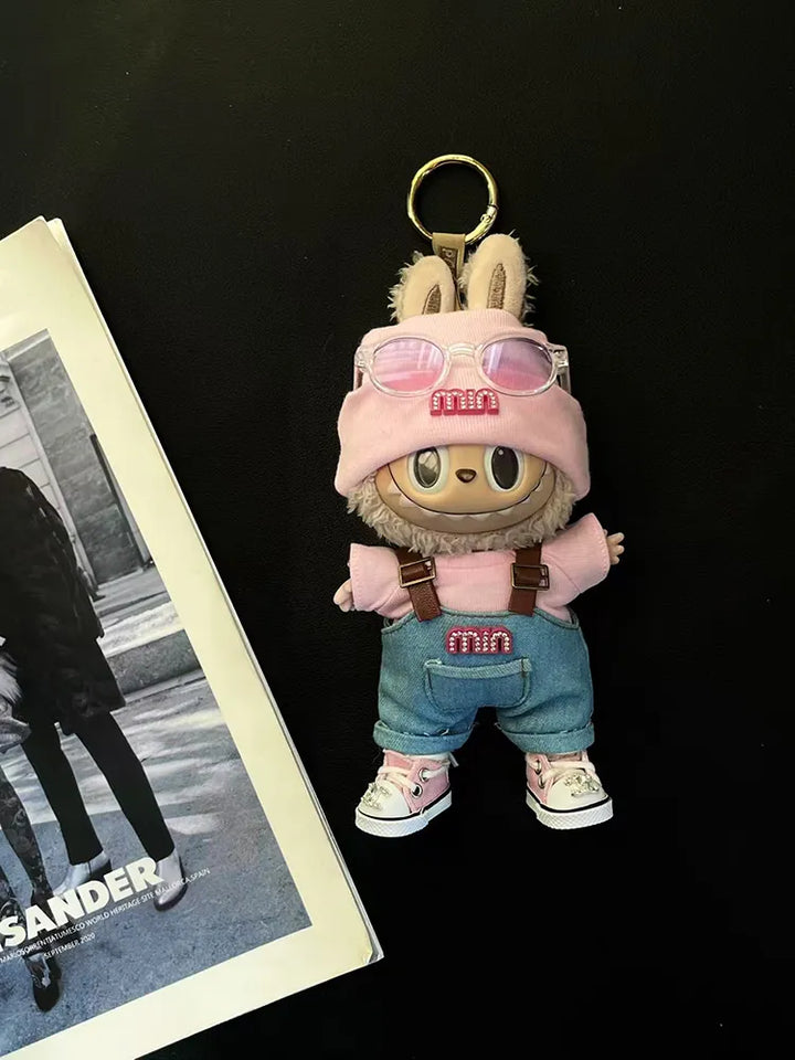 LABUBU Clothes mi*mi* Pink Knit Hat & Overalls Set