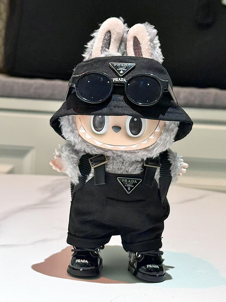 LABUBU Clothes Prad* Chic Black Fisherman Hat& Overalls Outfit