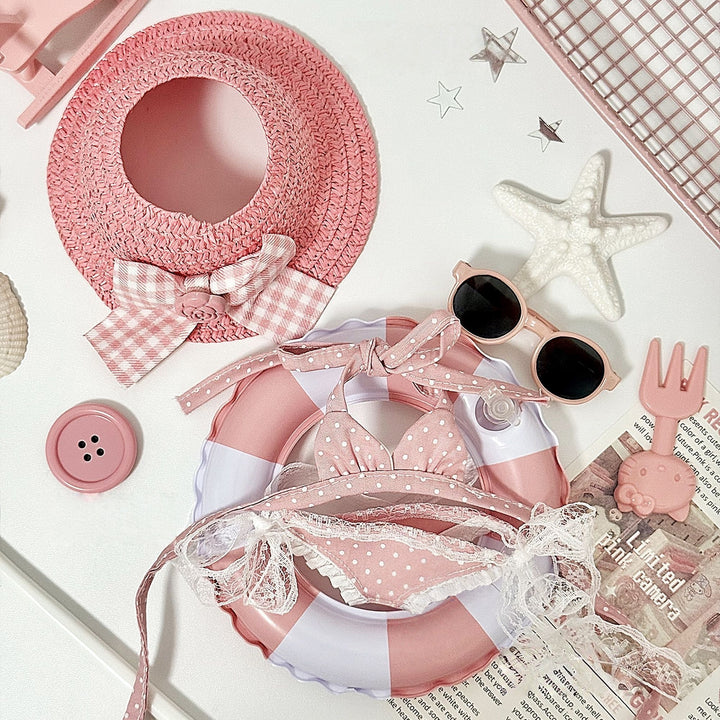 Blue (swimsuit+hat+swimming circle+glasses), Blue (swimsuit+hat+swimming circle), Blue (swimsuit+hat), Red (swimsuit+hat+swimming circle+glasses), Red (swimsuit+hat+swimming circle), Red (swimsuit+hat), Pink (swimsuit+hat+swimming circle+glasses), Pink (swimsuit+hat+swimming circle), Pink (swimsuit+hat), White (swimsuit+hat+swimming circle+glasses), White (swimsuit+hat+swimming circle), White (swimsuit+hat) |