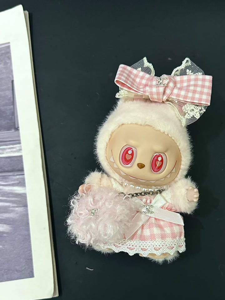 LABUBU Clothes Sweet Lace - trimmed Checked Dress Set
